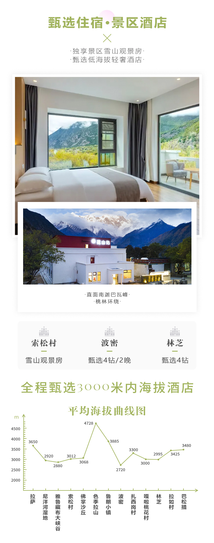 - Day2索松村-佛掌沙丘(遠觀)-色季拉山口(遠觀南迦巴瓦全景)-魯朗小鎮-波密桃花溝深度遊(如納村-傾多鎮-古通村)-波密(約260km)