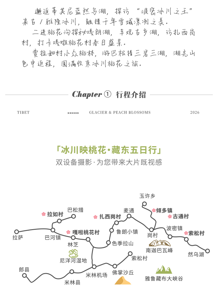 【春季限定】西藏林芝桃花輕奢深度攝影5日遊(索松村+然烏湖+來古冰川+南迦巴瓦+二進桃花溝+巴松措+單反&無人機+2-6人攝影小團)