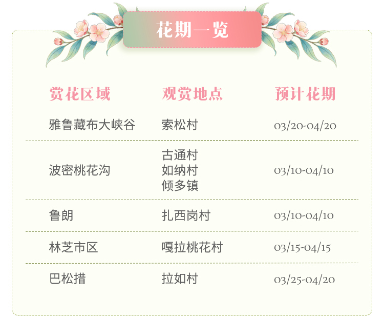波密-崗村-二進桃花溝(探秘嘎朗村嘎朗湖)-古鄉湖(車觀)-扎西崗村-嘎啦桃花村(桃花節開幕式所在地)-林芝散團(約240km)