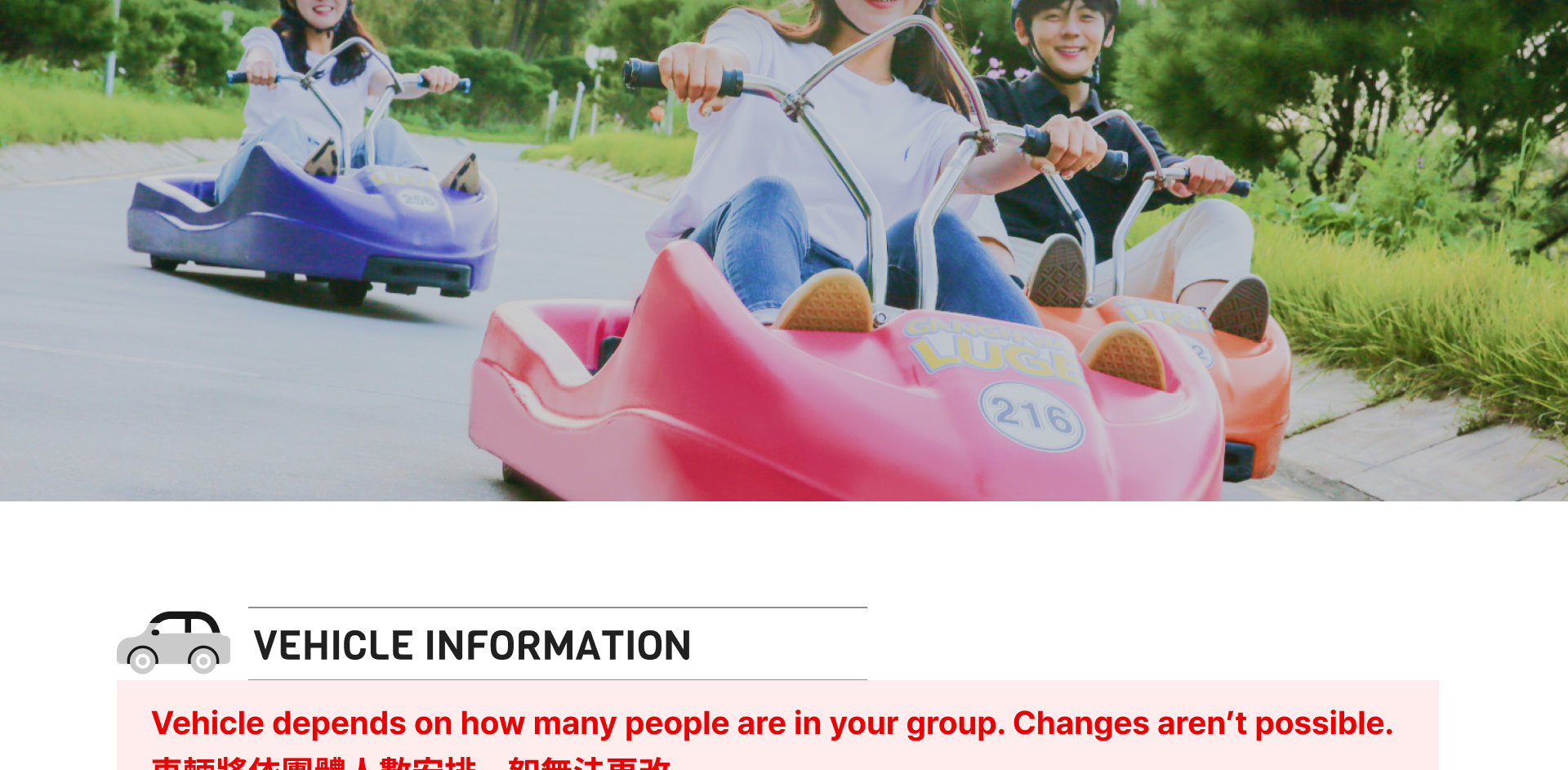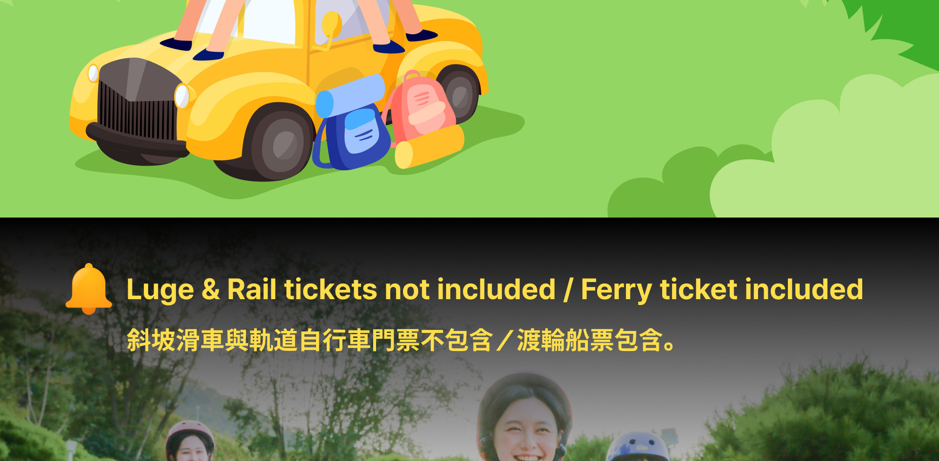 請注意:滑車搭乘費用未包含在內,需於現場另外支付。