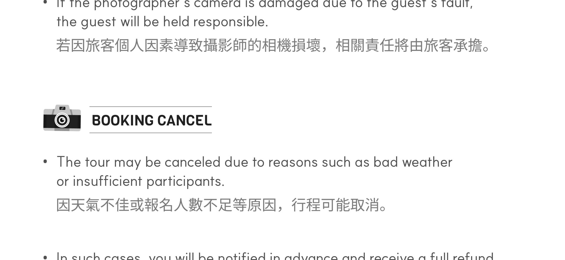 - 包含交通接駁,請務必確認您的出發及回程地點!