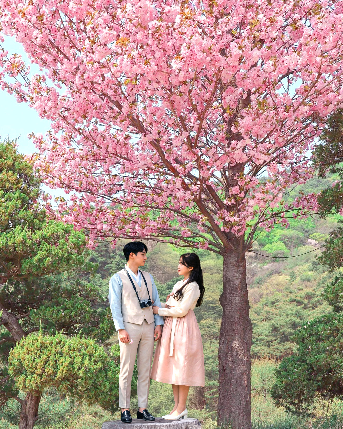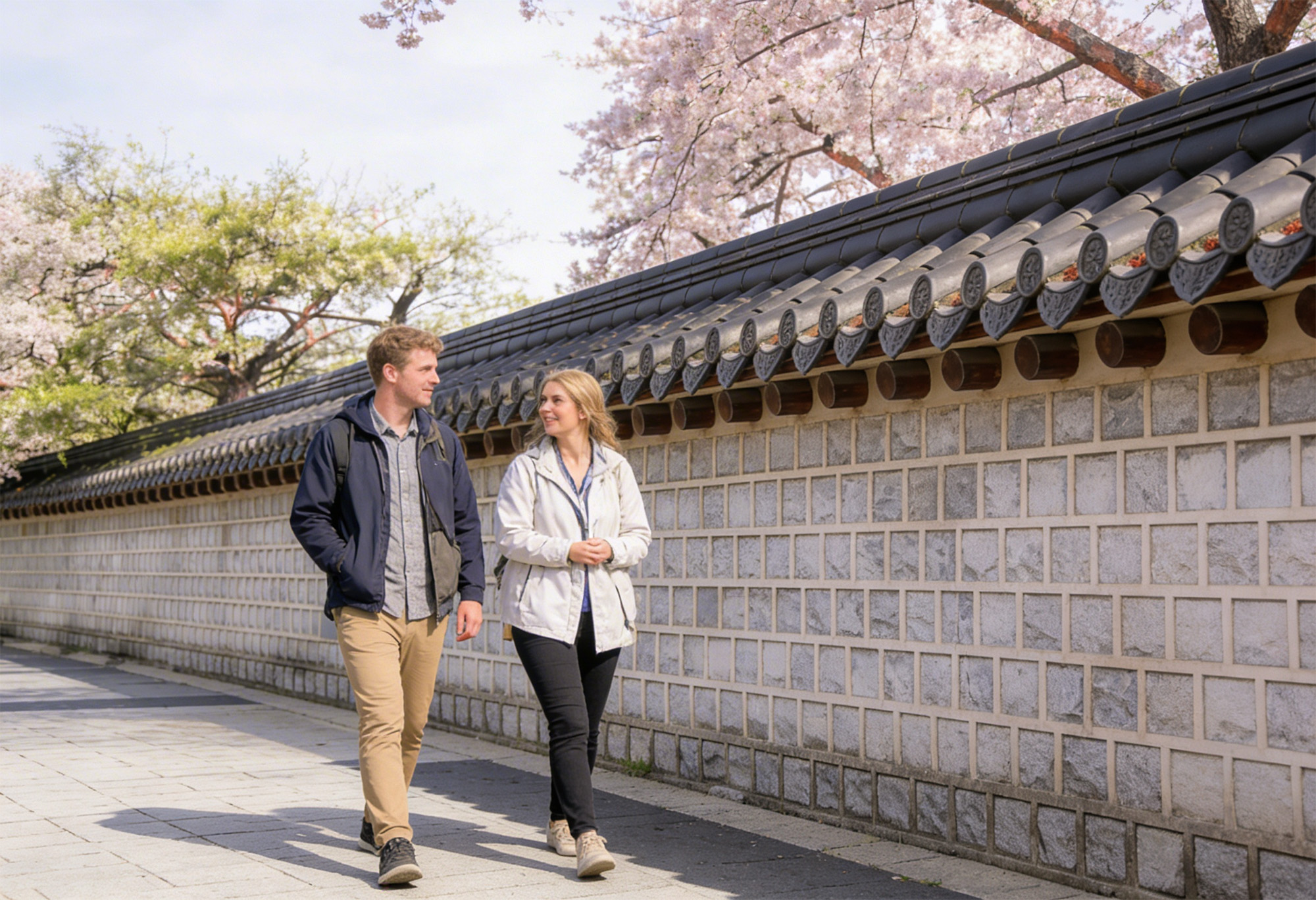 傳統韓屋 (hanok) 的魅力與櫻花的柔和粉色調相遇!