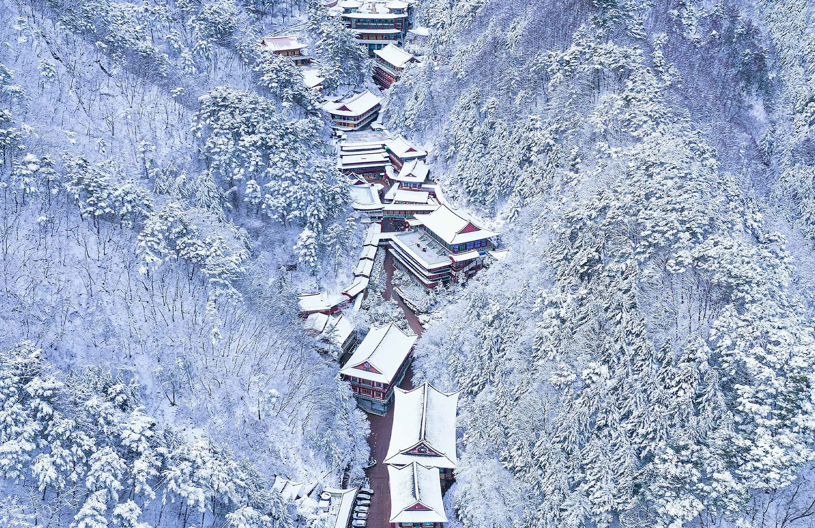 在皚皚白雪的映襯下,救仁寺的繽紛色彩顯得格外亮眼,營造出寧靜而近乎超凡脫俗的絕美景緻。
