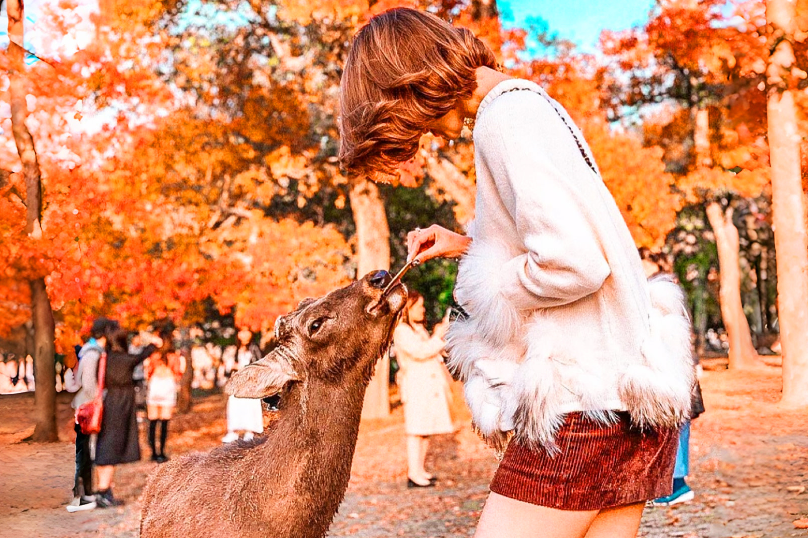- 在奈良公園與可愛的梅花鹿親密互動,感受人與自然和諧共處的溫馨時光。