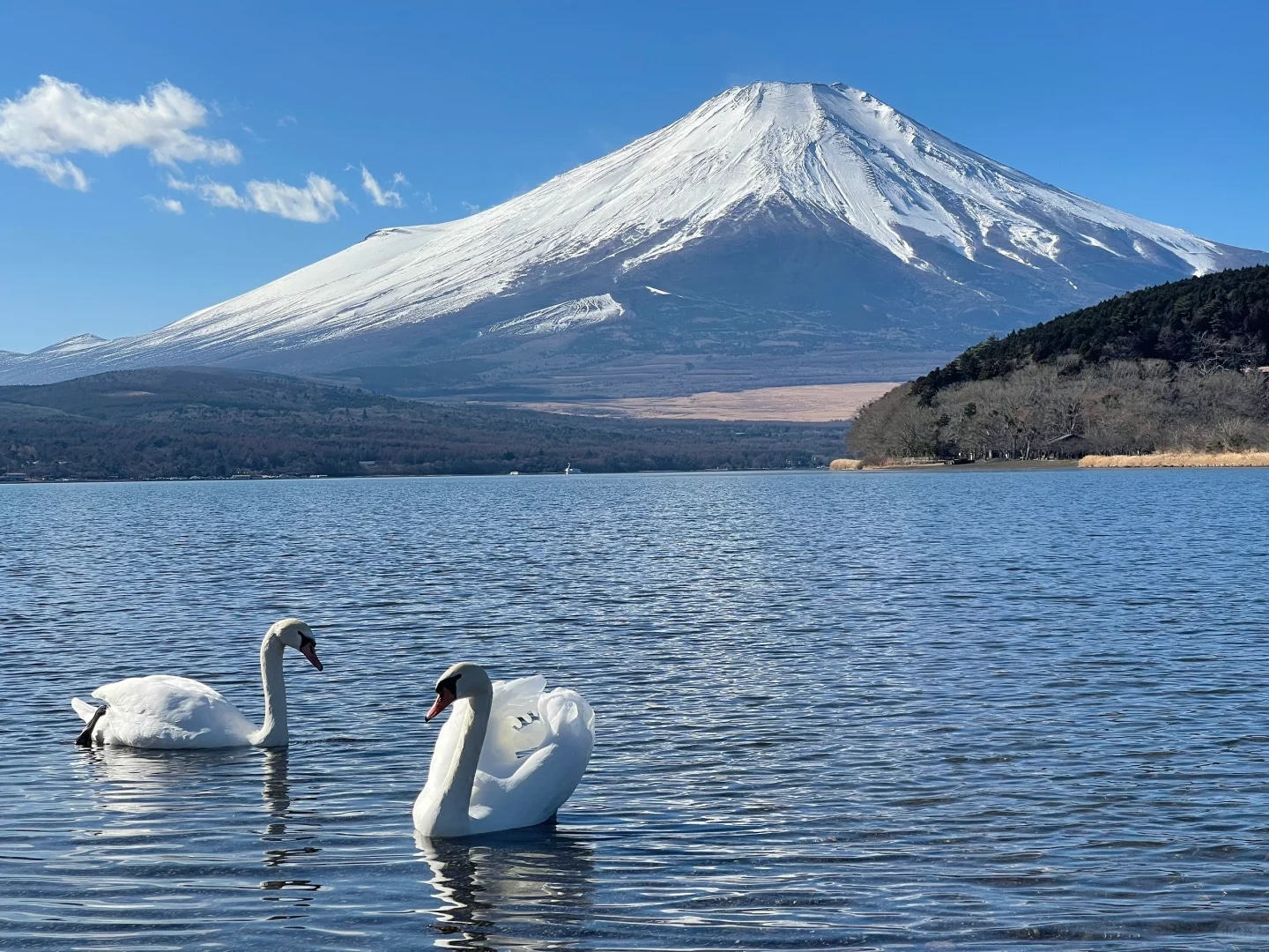 山中湖:"鏡頭追逐天鵝展翅掠水,倒影中富士山與羽翼同框,私藏天地饋贈的絕美構圖。"