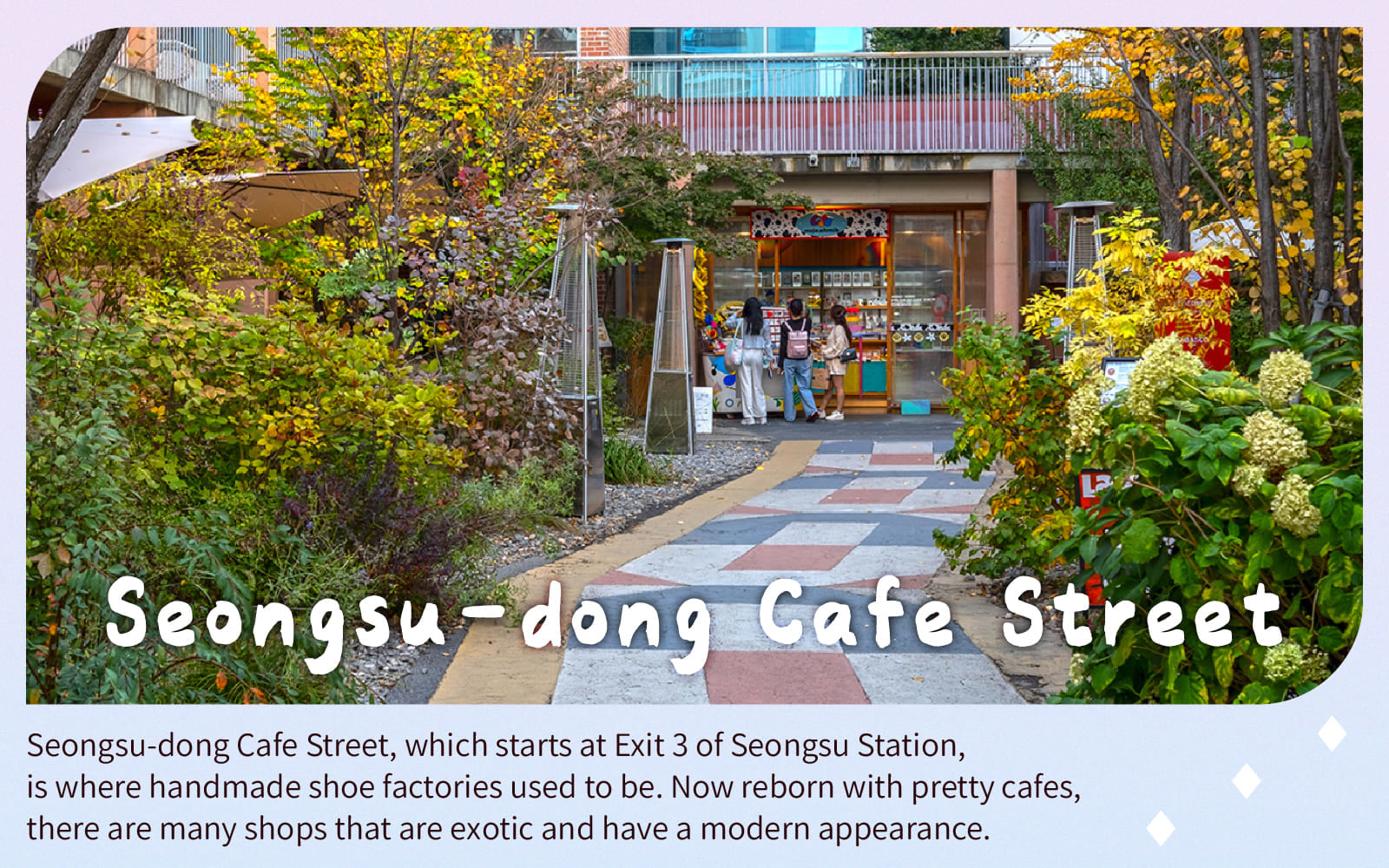 📍 探索聖水洞,首爾最時尚的街區,以其從手工製鞋廠到適合拍照的咖啡館和藝術空間的轉型而聞名。