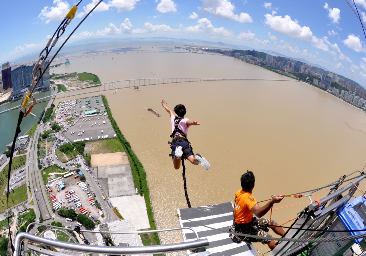 挑戰極限的終極旅程,從世界最高的高空彈跳一躍而下,以時速 200 公里的速度自由落體! 從233公尺高的平台一躍而下,挑戰者將體驗4 - 5秒的自由落體,接著50公尺長的彈跳繩將會拉伸,並在距離地面30公尺處反彈。還等什麼?現在就從澳門旅遊塔一躍而下,成為金氏世界紀錄保持者,向大家證明你的膽識!