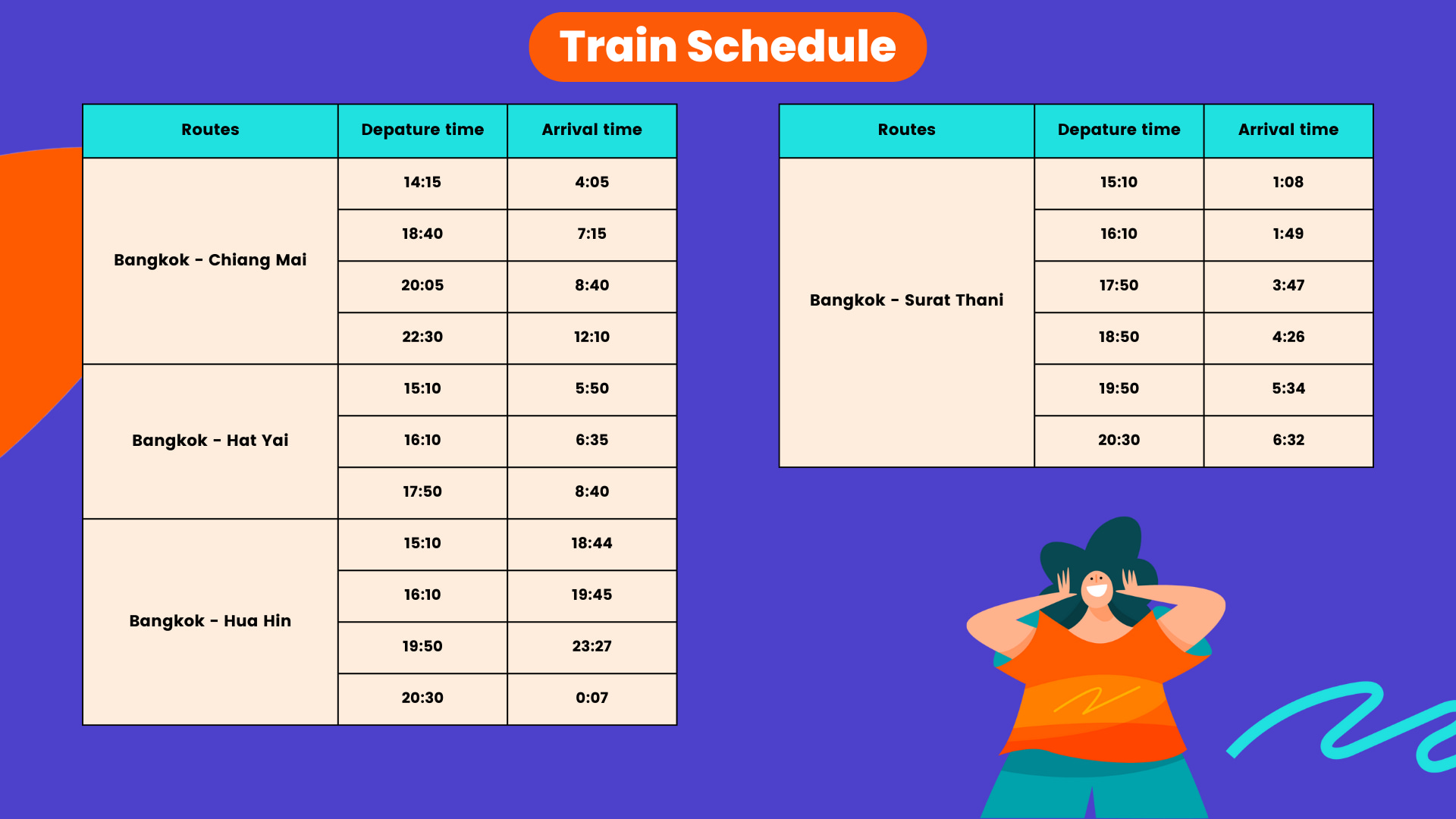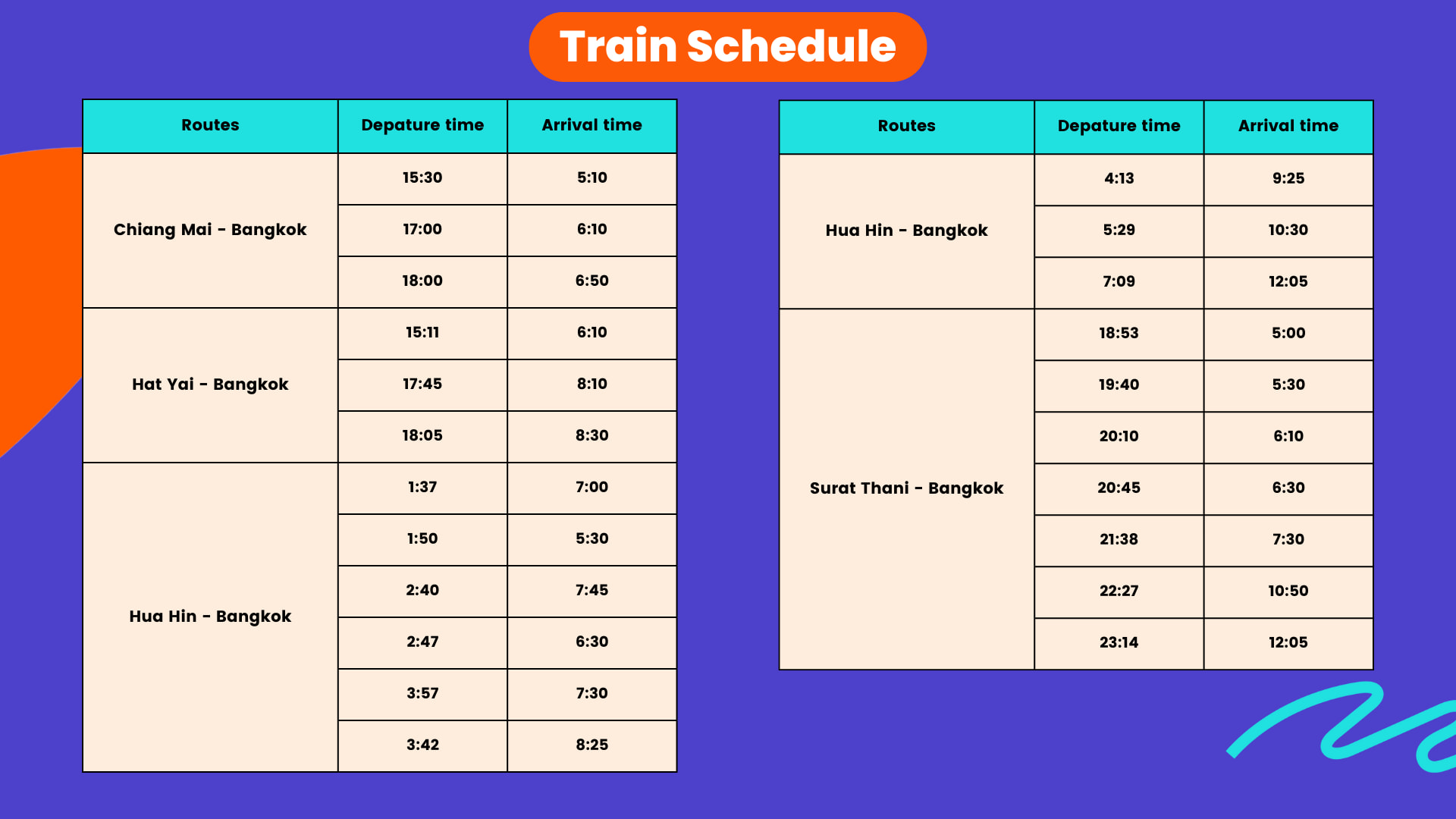 泰國鐵路就像一次穿越時空的旅程,融合了新舊的精華。登上飛機,享受舒適的座椅和美味的機上餐食。當您騎行時,向窗外望去,看看沿途很酷的地方和友善的面孔。這不僅僅是一次旅程——它就像一張了解泰國曆史、現在和未來的門票,一切都包含在一次激動人心的旅行中!