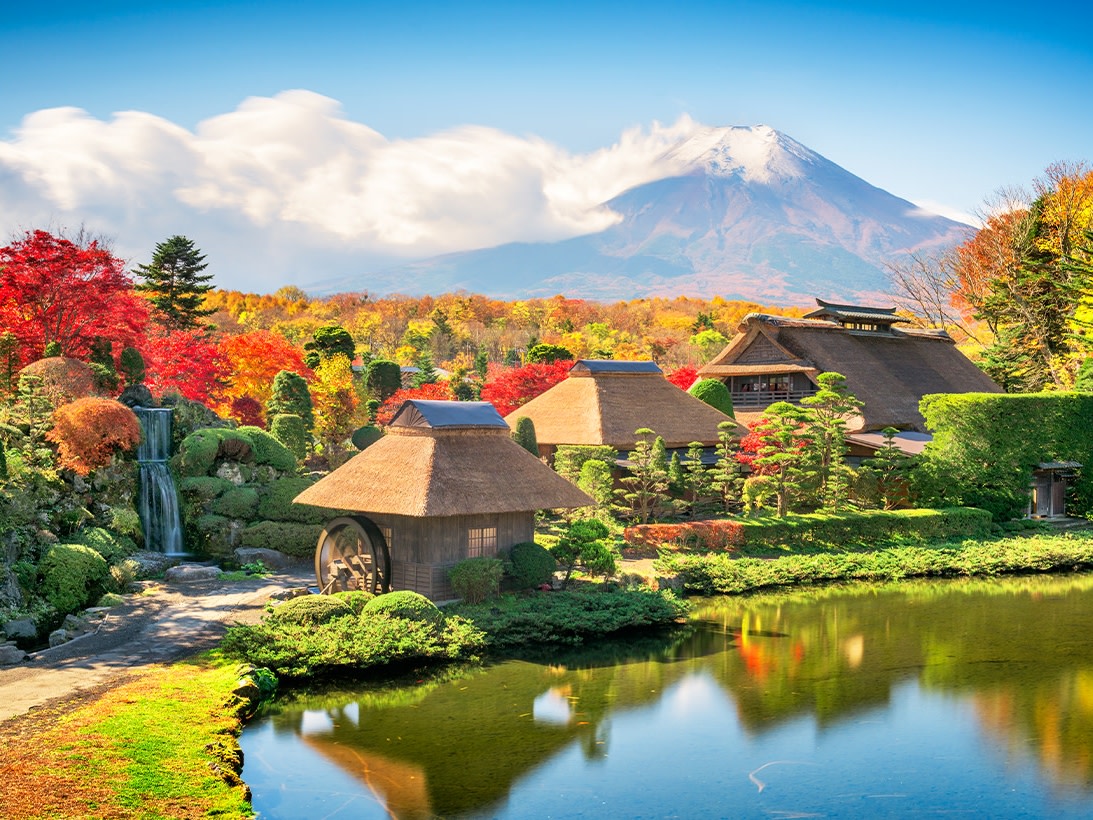 在富士山腳下,您可以探訪被譽為日本九寨溝的忍野八海。這八個清泉實際上是由富士山的雪水流經地層過濾而成,以其優美的自然環境而聞名。這些池水波光粼粼,與壯麗的富士山相映成趣