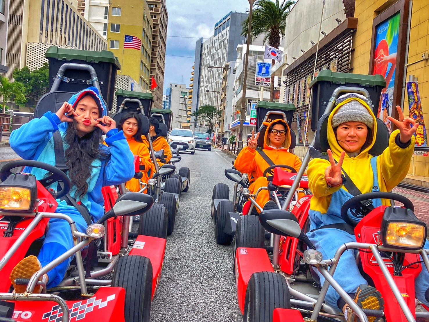 導遊將會教您如何駕駛卡丁車,並帶您前往最佳景點,幫助您更加熟悉這個地區。如果您願意,還可以穿上我們提供的服裝,讓您在人群中脫穎而出。起點將會是我們位於那霸的辦公室。