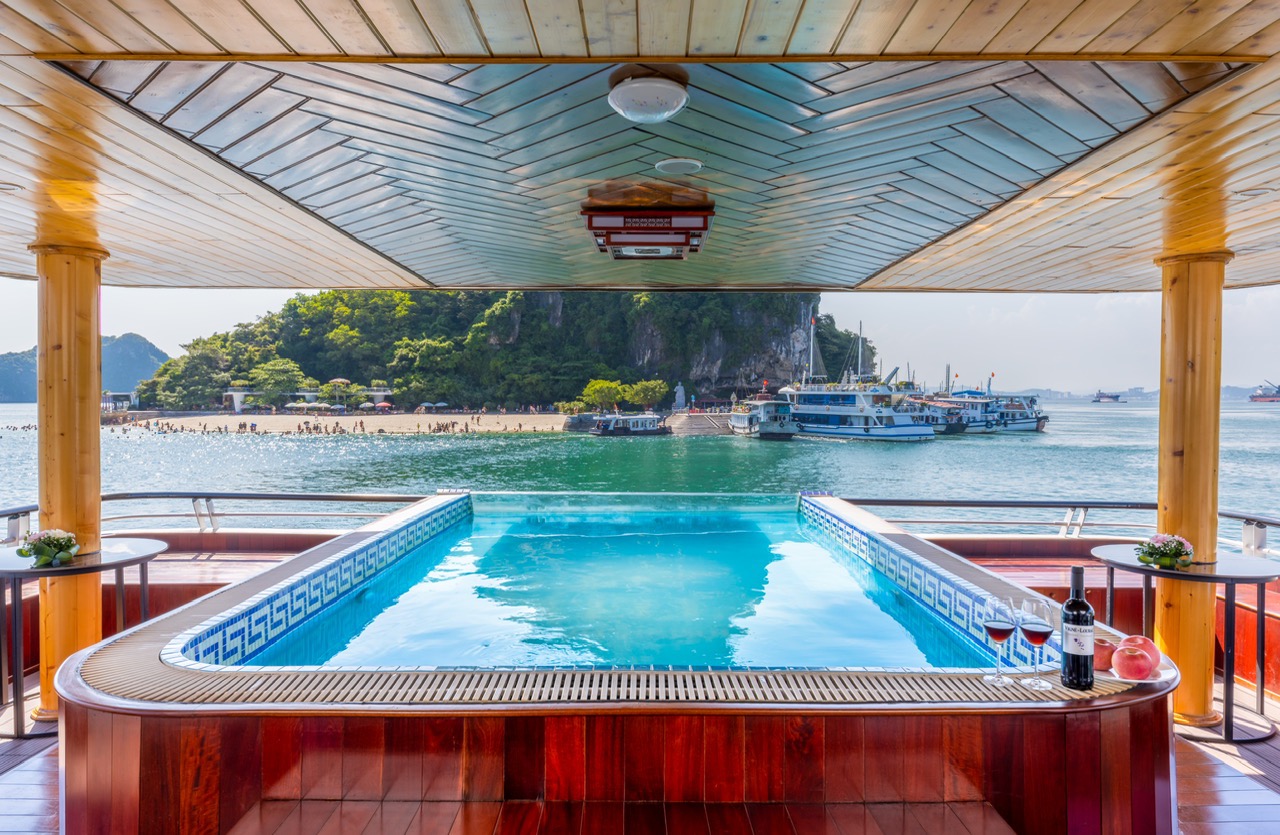 乘坐Heritage Luxury Day Cruise,以極致舒適和時尚的方式體驗下龍灣的奇觀。該郵輪專為尋求以高效的方式享受優質體驗的遊客而設計,完美融合了令人歎為觀止的風景、引人入勝的活動和精緻的設施,帶您探索這個聯合國教科文組織世界遺產。